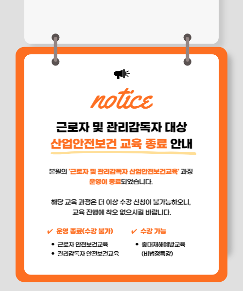 공지사항 자주하는 질문 교육변경 및 취소 1:1 문의하기